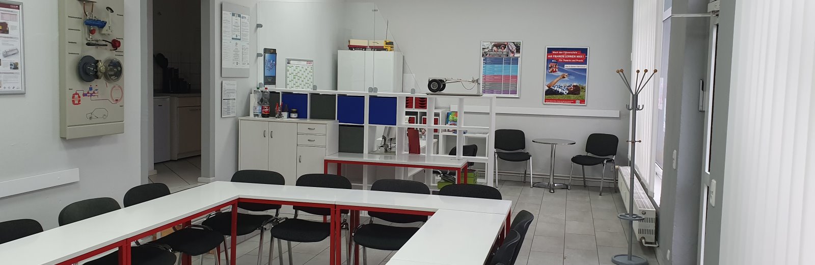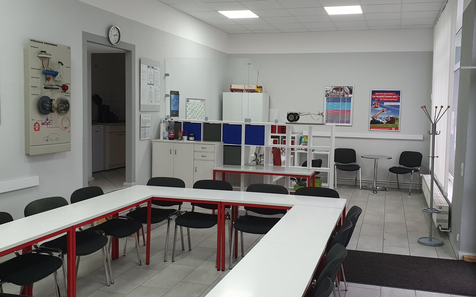 Hier wird der theoretische Unterricht für alle Führerscheinklassen durchgeführt und auch die Aus- und Weiterbildung von Berufskraftfahrern findet hier statt.